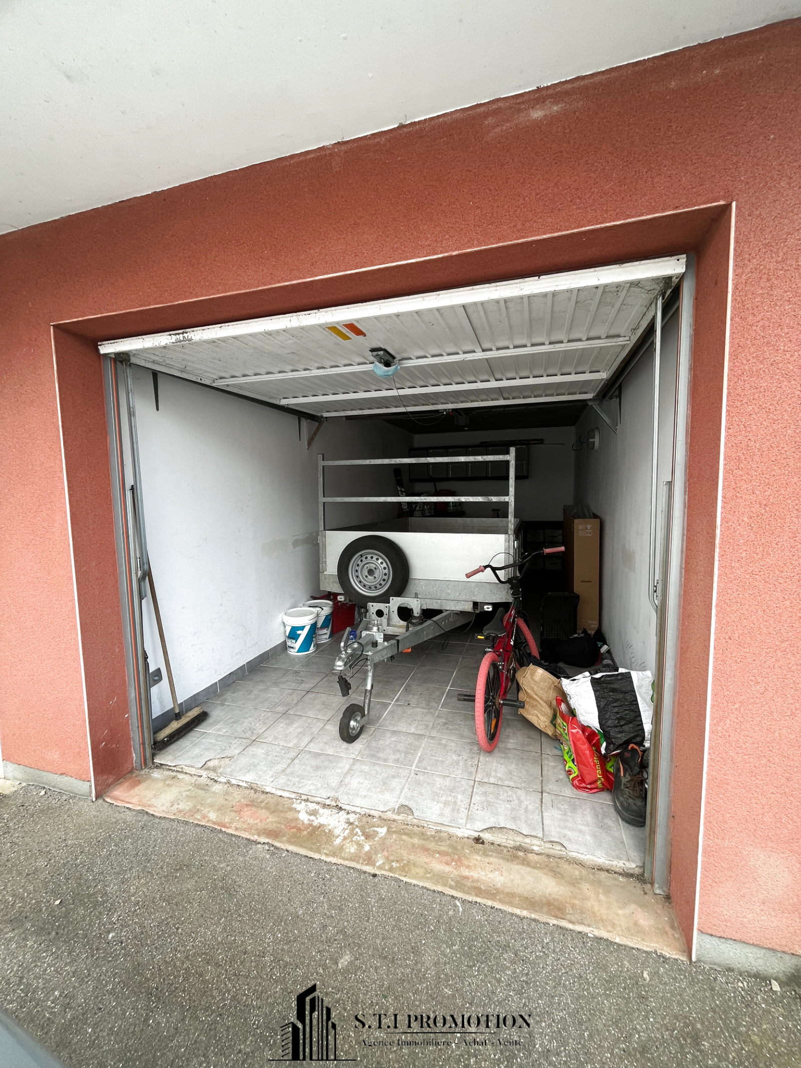 L’appartement dispose d’un garage individuel de 16 m² avec porte motorisée et d’une place de stationnement supplémentaire.