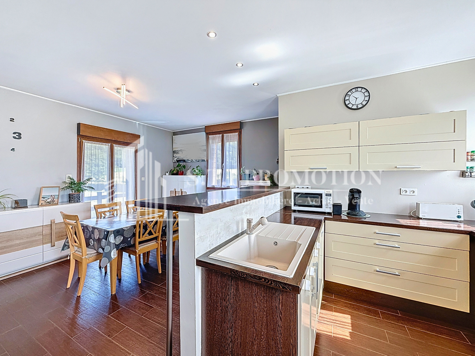 Dès l’entrée, vous serez séduits par la luminosité naturelle qui baigne les pièces de vie, notamment grâce à un salon-séjour spacieux de 36,5 m² avec cuisine ouverte, créant une atmosphère chaleureuse et conviviale, parfaite pour recevoir vos proches ou simplement profiter de moments en famille.